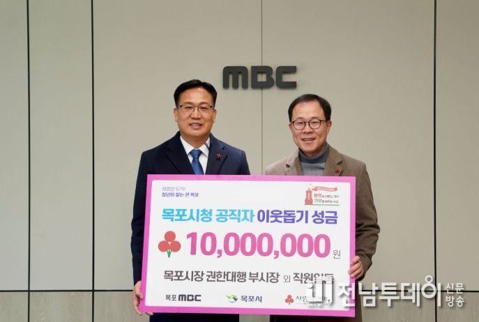 전남투데이 김용희 기자 | 목포시는 지난 26일 사회복지공동모금회가 주관하는 ‘희망 2026 나눔캠페인’에 공직자 모금액 1,000만 원을 목포MBC를 통해 기탁하며 캠페인에 동참했다.