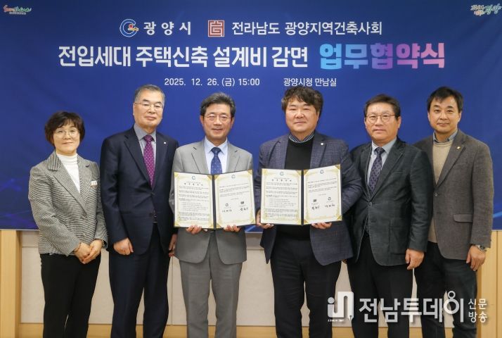 광양시는 26일 시청 만남실에서 전라남도 광양지역건축사회(회장 박동기)와 전입세대 주택신축 설계비 감면 업무협약을 체결했다고 밝혔다.