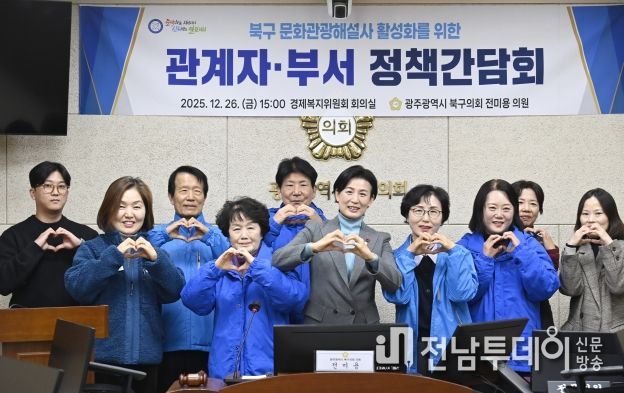 전남투데이 김경민 기자 | 광주 북구의회 전미용 의원(중흥1·중흥·신안·임·중앙동)은 지난 26일 북구의회 경제복지위원회 회의실에서 북구 문화관광해설사 활성화를 위한 정책간담회를 개최했다.