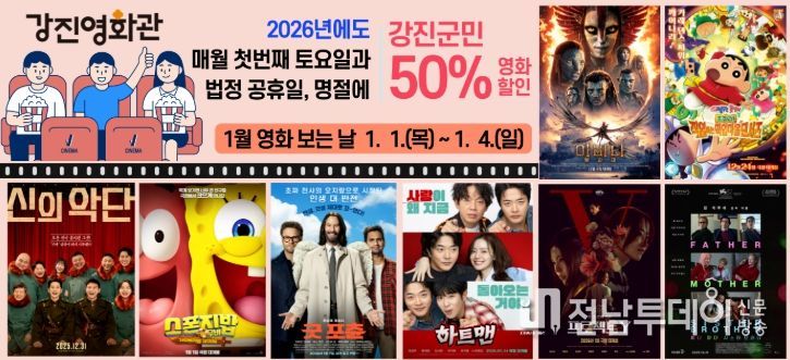 전남투데이 박동운 기자 | 강진군민이면 누구나 부담 없이 영화를 즐길 수 있는 강진영화관 ‘영화 보는 날’ 프로그램잉 2026년에도 이어진다.