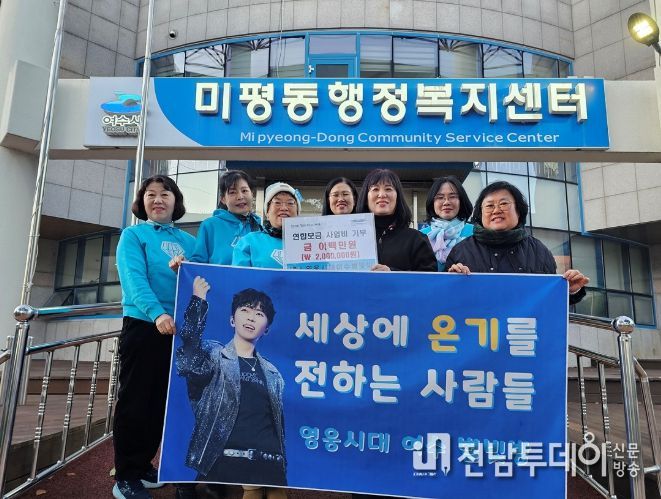 전남투데이 조평훈 기자 | 가수 임영웅 팬클럽 ‘영웅시대 여수별빛방’이 연말을 맞아 지난 26일 미평동 주민센터를 방문해 저소득층 지원을 위한 연합모금 성금 200만 원을 기부했다.