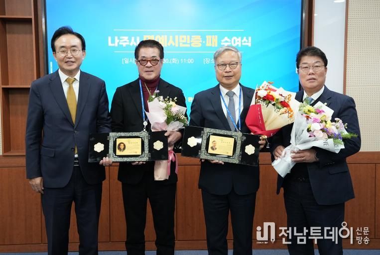 전남투데이 김윤걸 기자 | 전라남도 나주시가 에너지와 문화 분야에서 시정 발전과 도시 위상 제고에 기여한 인사를 명예시민으로 선정하고 그 공로를 공식적으로 기렸다.