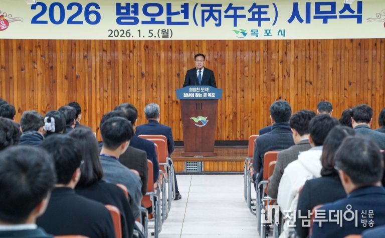 전남투데이 김용희 기자 | 목포시는 5일 목포시청에서 2026년 병오년(丙午年) 시무식을 열고 본격적인 새해 업무에 돌입했다.