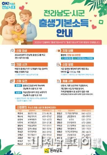 전남투데이 김용희 기자 | 전라남도는 2024년생에 이어 전남에서 태어난 2025년생 출생아에게 전라남도–시군 출생기본소득을 지급한다.