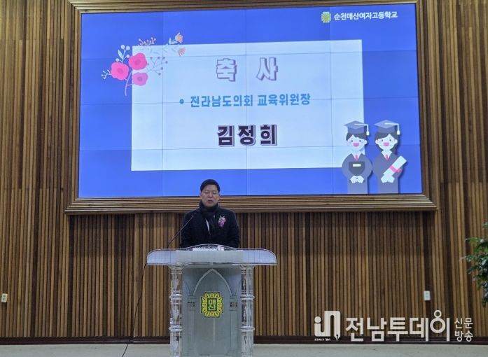전남투데이 김용희 기자 | 김정희 전남도의회 교육위원장은 1월 6일 순천매산여자고등학교에서 열린 제75회 졸업식에 참석해 졸업생들의 새로운 출발을 축하하고, 전남교육의 미래를 향한 도의회 교육위원회의 지원 의지를 밝혔다.