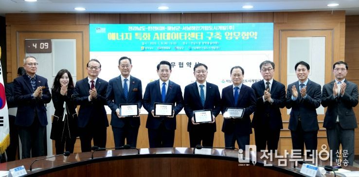 전남투데이 김용희 기자 | 전라남도는 8일 한전KDN, 해남군, 서남해안기업도시개발㈜와 에너지 특화 AI 데이터센터 구축 및 AI·에너지 신산업 육성을 위한 업무협약을 했다.