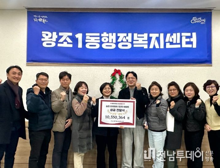 전남투데이 조평훈 기자 | 순천시 왕조1동 트리마제 순천 1단지 아파트 주민들이 희망2026 나눔캠페인을 통해 이웃돕기 성금 1천55만원을 모금해 기부했다.