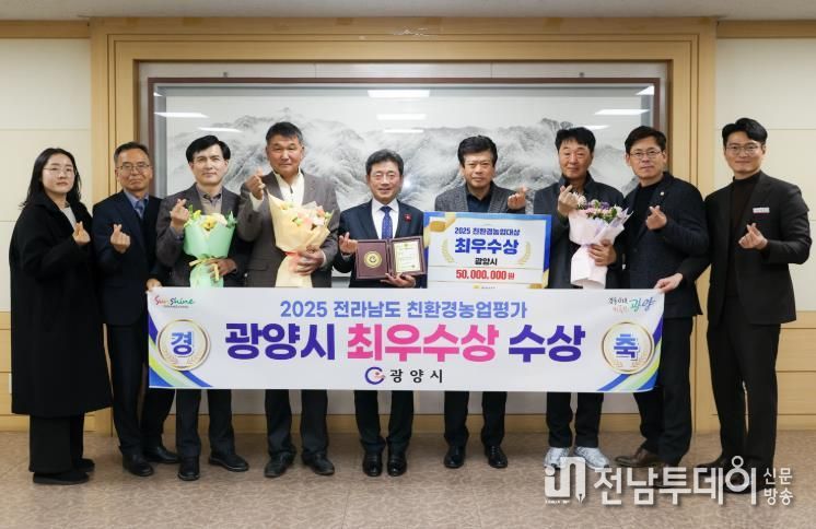 전남투데이 조평훈 기자 | 광양시는 전라남도 주관 ‘2025년도 친환경농업대상’ 평가에서 벼 이외 과수·채소 등 품목 다양화와 저탄소 농산물 인증 면적 대폭 증가 등 우수한 성과를 인정받아 최우수상을 수상했다고 밝혔다.