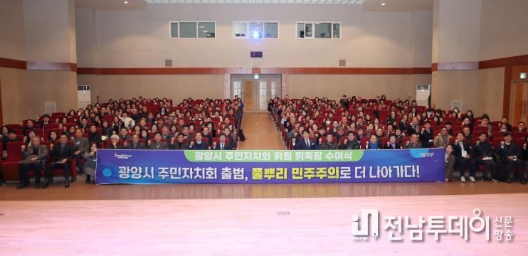 전남투데이 조평훈 기자 | 광양시는 지난 12일 광양커뮤니티센터 다목적홀에서 광양시 주민자치회 위원 위촉식을 개최하고, 주민이 직접 지역 문제를 논의하고 해결하는 풀뿌리 민주주의 실현을 위한 첫걸음을 내디뎠다.