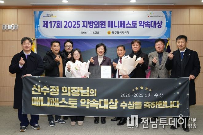 이번 수상으로 신수정 의원은 광역지방의원 매니페스토 약속대상 5관왕을 달성하며, 공약 이행과 입법 성과 전반에서 지속적인 성과를 인정받았다.