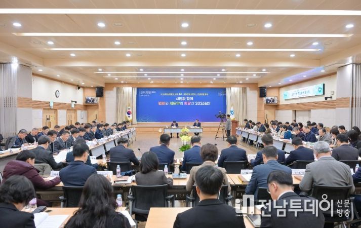 전남투데이 조평훈 기자 | 여수시는 지난 15일 시청 회의실에서 정기명 여수시장 주재로 5급 이상 간부 공무원 70여 명이 참석한 가운데 ‘2026년 주요 업무 보고회’를 개최했다.