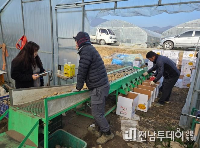 전남투데이 강길수 기자 | 구례군 농업기술센터는 1월 16일 용방면 감자작목반(회장 최인호)이 재배한 통일감자 수확 현장에서 기술지도를 했다고 밝혔다.