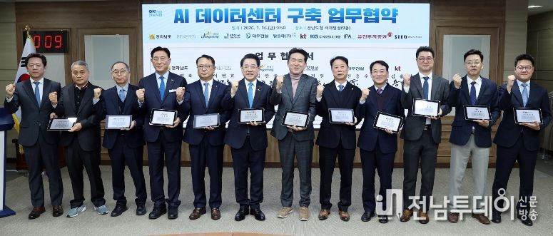 강진군은 지난 16일 전라남도청 서재필실에서 전라남도, ㈜베네포스와 함께 ‘강진 AI 데이터센터’ 건립을 위한 업무협약(MOU)을 체결했다.