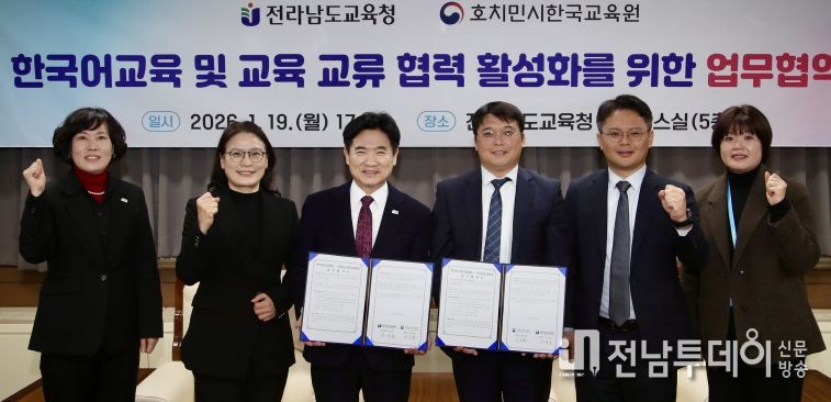 전남투데이 김용희 기자 | 전라남도교육청과 호치민시한국교육원은 19일 전라남도교육청에서 한국어교육, 국제 교육교류 활성화 및 외국인 유학생 유치 협력을 위한 업무협약을 체결했다.