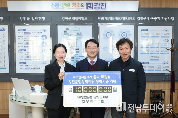 지난 15일, 장영조 NH농협은행 강진군지부 지부장 1천만 원, 윤길식 강진군산림조합 조합장이 1천만 원의 장학금을 강진군민장학재단에 전달 하며, 지역 인재 육성을 위한 뜻깊은 나눔을 이어갔다.