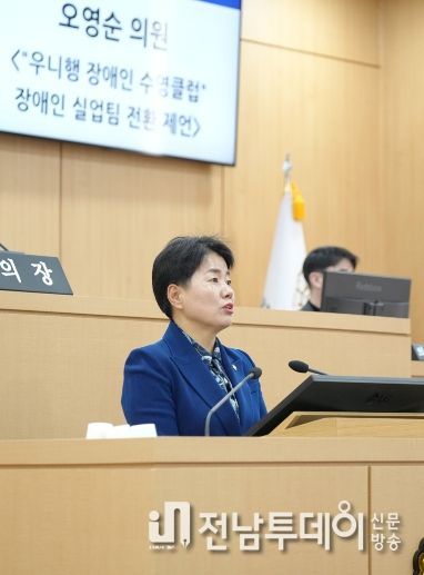 전남투데이 김경민 기자 | 오영순 광주 남구의회 의원은 25일 제317회 임시회 1차 본회의에서 5분 발언을 통해 ‘우니행 장애인수영클럽’을 ‘남구청 장애인실업팀 수영단으로’ 운영할 것을 제안했다.
