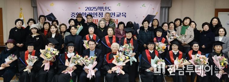 전남투데이 김경민 기자 | 광주시교육청금호평생교육관은 21일 제3평생학습실에서 ‘2025학년도 중학학력인정 성인교육 이수 및 졸업식’을 개최했다.