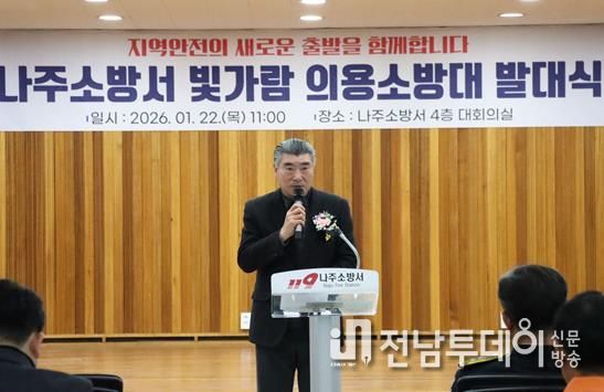전남투데이 김용희 기자 | 전라남도의회 최명수 도의원(더불어민주당·나주2)은 1월 22일 나주소방서 대회의실에 열린 ‘빛가람 의용소방대 발대식’에 참석해 발대를 축하하고, 지역 안전 강화를 위한 의용소방대의 역할과 중요성을 강조했다.