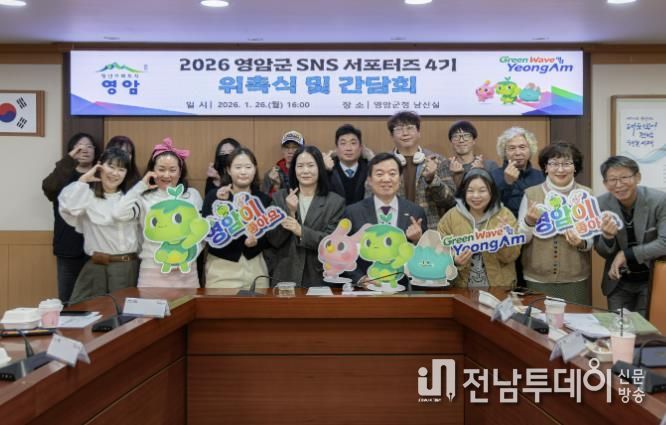 전남투데이 박상훈 기자 | 영암군이 26일 군청에서 ‘2026 영암군 SNS 서포터즈 4기 위촉식 및 간담회’를 열고, 이들의 본격 활약을 예고했다.