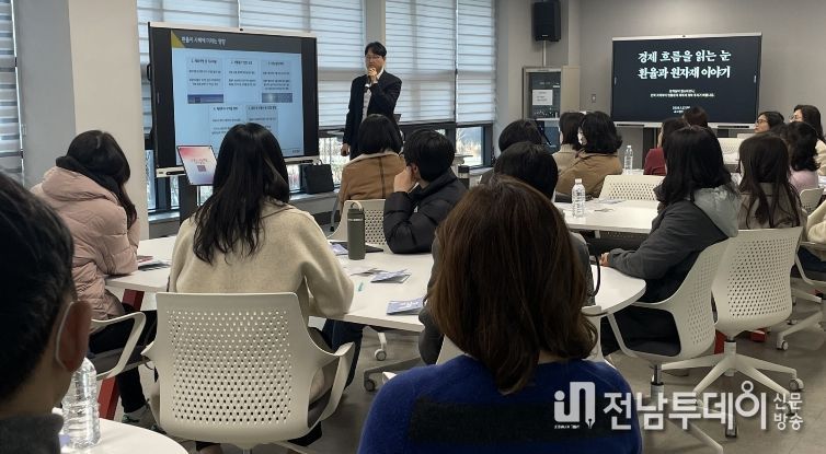 전남투데이 김경민 기자 | 광주시교육청은 27, 29일 교사성장마루에서 교원을 대상으로 ‘경제 흐름을 읽는 눈: 환율과 원자재 이야기’ 연수를 운영한다.