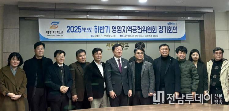 전남투데이 박상훈 기자 | 영암군 지·산·학이 27일 세한대 영암캠퍼스에서 ‘제8차 영암지역공헌위원회’를 열고 상생 발전 협력 방안을 논의했다.