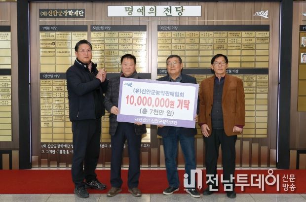 전남투데이 김용희 기자 | (유)신안군농약판매협회(회장 김문창)는 1월 29일 신안군청 영상회의실에서 (재)신안군장학재단에 장학기금 1천만 원을 기탁했다. 이번 기탁으로 협회는 2019년 첫 기탁을 시작으로 7년 동안 총 7천만 원의 장학기금을 기탁하며 지역인재 육성을 위한 지속적인 기탁을 이어가고 있다.