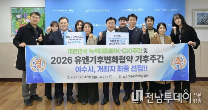 전남투데이 조평훈 기자 | 여수시가 ‘2026년 유엔기후변화협약(UNFCCC) 기후주간(Climate Week)’ 개최지로 대한민국(여수)이 최종 선정됐다고 밝혔다.