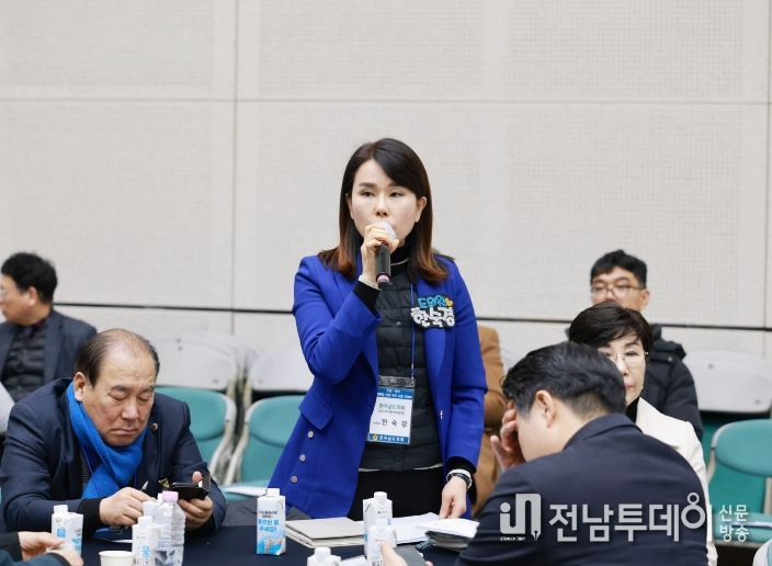 전남투데이 김용희 기자 | 전라남도의회 한숙경 의원(더불어민주당·순천7)은 지난 1월 29일 전남도청 왕인실에서 열린 ‘전남·광주 행정통합 관련 의견수렴 간담회’에 참석해 행정통합 논의와 함께 산업통상부의 전남 동부권 이전이 필요하다고 주장했다.