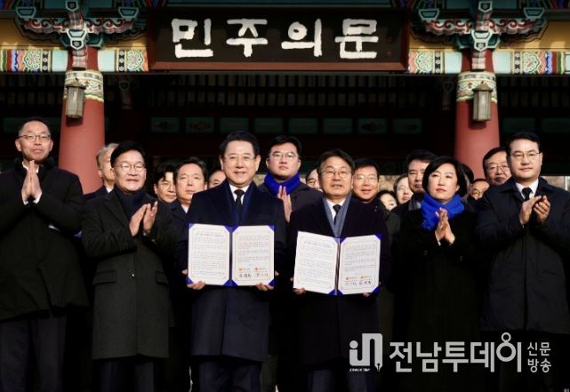 강기정 시장은 “지난 1월 2일 광주전남 통합 추진을 공식 선언한 이후, 공청회와 간담회, 설명회를 통해 현장의 의견을 수렴해 입법을 준비해왔다”며 “그 결과 특별법안이 더불어민주당 당론으로 채택돼 국회에 발의됐다”고 설명했다.