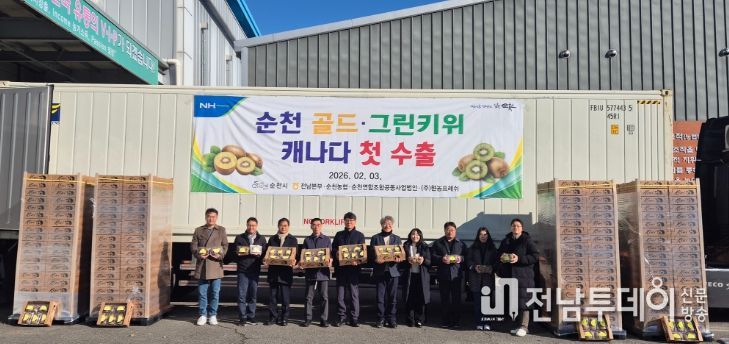 전남투데이 조평훈 기자 | 순천시는 3일 순천거점산지유통센터에서 ‘2026년 순천 참다래 캐나다 첫 수출 기념 상차식’을 개최했다고 밝혔다.