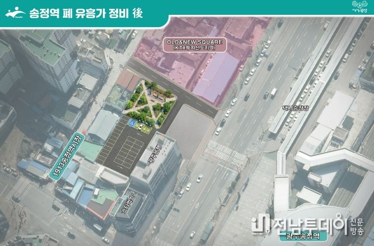 전남투데이 김경민 기자 | 광주 광산구가 광주송정역을 호남 관문다운 공간으로 변화시키기 위해 광장 확장 사업에 이어 오랜 난제로 방치된 역 맞은편 폐 유흥가 일대(일명 송정리 1003번지)를 시민 공간으로 전환하는 공공 주도 정비 사업을 추진한다.