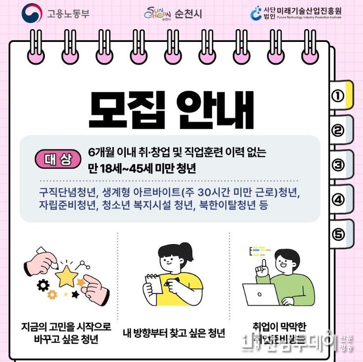모집 기간은 2026년 상시 운영이며, 자세한 사항은 순천시청 누리집 또는 청년정책114 홈페이지를 참고하거나 청년정책과 청년일자리팀, 사단법인 미래기술산업진흥원으로 문의하면 된다.