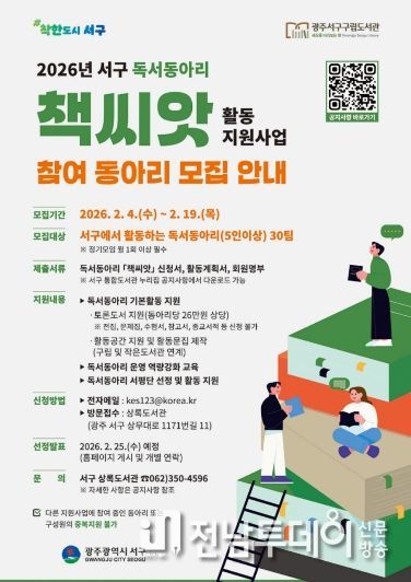 전남투데이 김경민 기자 | 광주광역시 서구가 주민 주도의 독서 문화를 활성화하고 책을 통한 소통과 나눔을 확산하기 위해 독서동아리 ‘책씨앗’ 활동 지원사업을 추진한다.