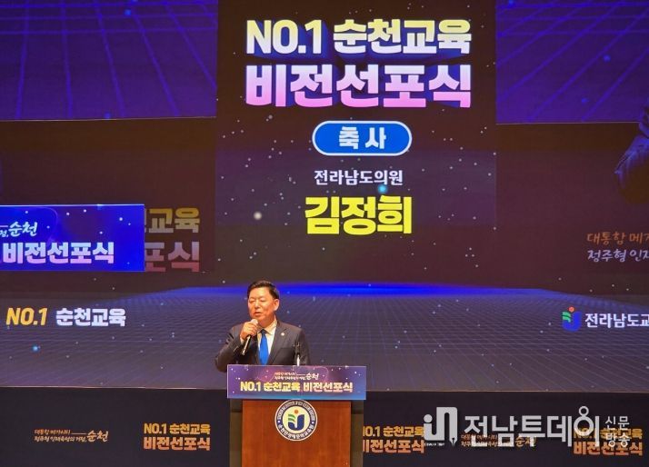 전남투데이 김용희 기자 | 김정희 전남도의회 교육위원장은 2월 5일 순천만생태문화교육원에서 열린 'NO.1 순천교육 대통합 메가시티 인재육성 거점, 순천' 비전 선포식에 참석해 “교육을 통해 순천의 정주 여건을 강화하고, 도시 경쟁력을 되찾는 데 전남도의회 교육위원회가 앞장서겠다”라고 밝혔다.