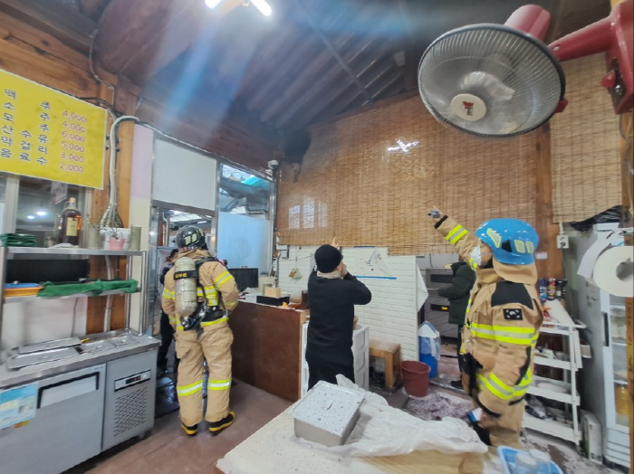화재를 발견한 상인은 즉시 119에 신고한 뒤, 식당에 비치된 수동식 소화기와 인근에 설치된 비상소화장치함을 활용해 초기 진화에 나섰다. 그 결과 불길은 빠르게 제압돼 인명피해 없이 상황이 마무리됐다.