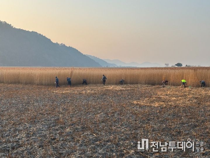 전남투데이 조평훈 기자 | 순천시는 2월 9일부터 4월 30일까지 약 3개월간 소조기 간조 물 때 전후 5~6일 동안 순천만습지 일원에서 갈대숲 탐방로 고엽갈대 제거와 원형갈대 군락 갈대 베기 작업을 추진한다고 밝혔다.
