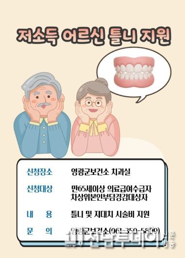 전남투데이 박세훈 기자 | 영광군보건소에서는 경제적 어려움으로 적절한 치과 치료 시기를 놓쳐 치아를 상실한 취약계층의 구강건강 회복을 위해 저소득층 어르신을 대상으로 의치 보철을 연중 지원하고 있다.