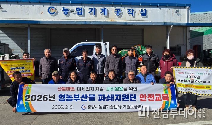 전남투데이 조평훈 기자 | 광양시는 지난 9일 농업기술센터에서 ‘2026년 영농부산물 파쇄지원단’ 본격 운영을 앞두고 안전교육과 함께 발대식 및 캠페인을 개최했다고 밝혔다.