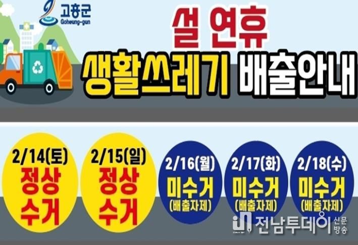 전남투데이 조평훈 기자 | 고흥군은 설 명절 연휴 기간 동안 생활폐기물로 인한 주민 불편을 최소화하고 쾌적한 생활환경을 유지하기 위해 설 연휴 생활폐기물 관리대책을 수립하고 본격 추진한다고 밝혔다.