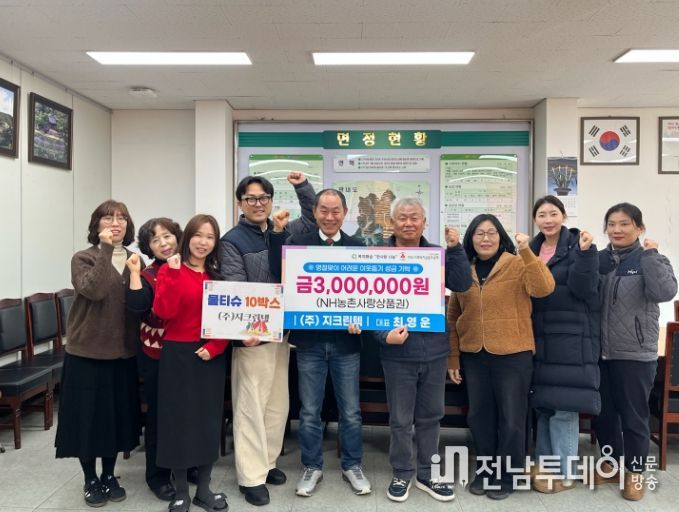 전남투데이 강영선 기자 | 화순군 동면 행정복지센터는 지난 9일 ㈜지크린텍(대표 최영운)이 설 명절을 맞아 지역 내 어려운 이웃을 위해 농협 상품권 300만 원과 물티슈 10박스를 기부했다고 밝혔다.
