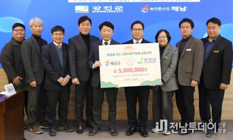 전남투데이 박동운 기자 | 강진군과 해남군이 지난 6일, 고향사랑기부금 각 500만 원을 상호 기부하며 두 지자체 간 상생 발전과 고향사랑기부제 활성화를 위한 뜻을 모았다.