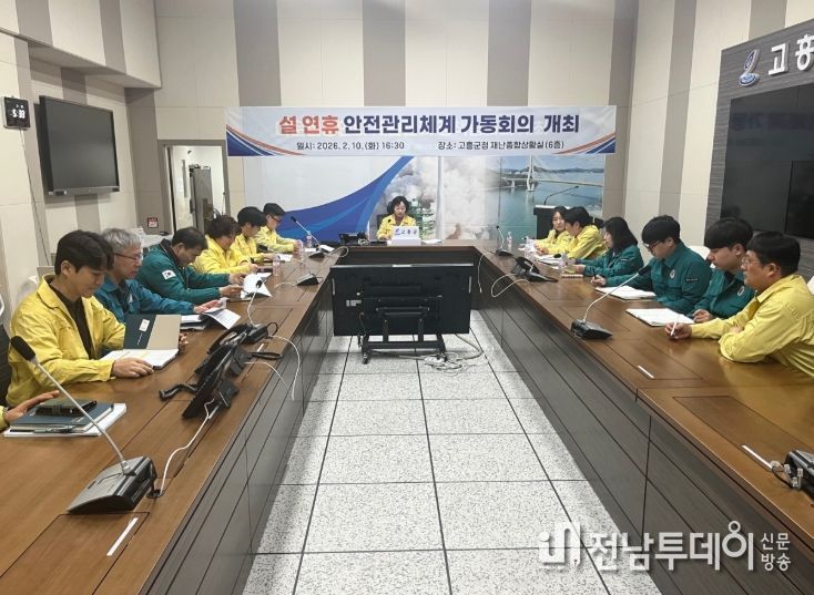 전남투데이 조평훈 기자 | 고흥군은 지난 10일 군청 재난종합상황실에서 ‘설 연휴 안전관리체계 가동 회의’를 개최하고, 설 연휴 기간 중 발생할 수 있는 각종 안전사고 예방과 재난 대응체계 점검에 나섰다.