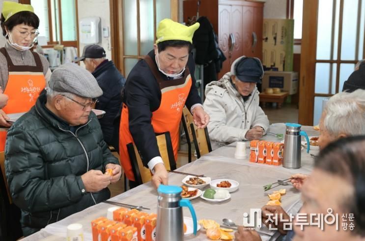 공영민 군수는 분회경로식당과 노인복지시설을 차례로 방문해 어르신 한 분 한 분께 인사를 전하고 건강 상태와 생활 불편 사항 등을 세심히 살폈다.