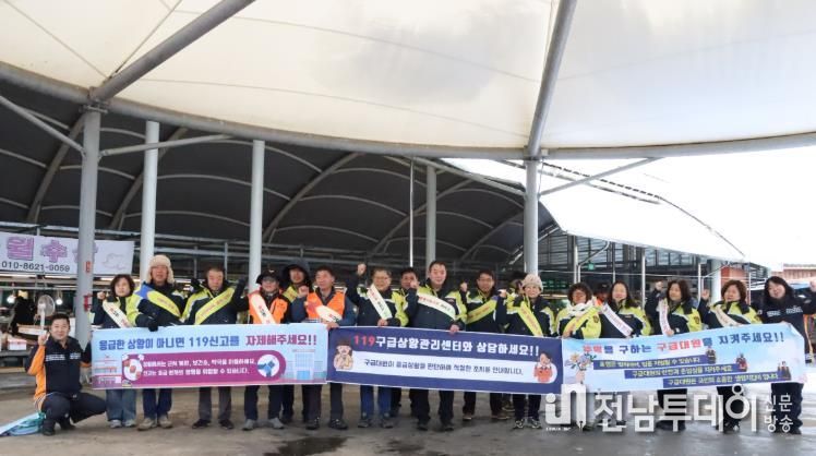 전남투데이 김윤걸 기자 | 나주소방서는 설 명절 앞두고 구급차 이용이 급증할 것으로 예상됨에 따라 영산포 풍물시장에서 의용소방대와 함께 ‘119구급차 이용문화 확산’을 위한 캠페인을 실시했다.