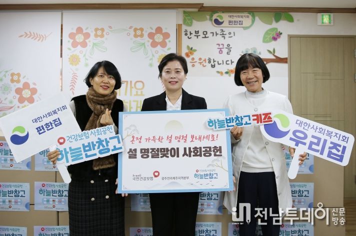전남투데이 김경민 기자 | 국민건강보험공단 광주전라제주지역본부는 설 명절을 맞아 2월 11일, 광주 광산구에 위치한 미혼모 양육시설 편한집과 우리집에 방문하여 생필품과 먹거리 등 300만 원 상당의 후원 물품을 전달했다.