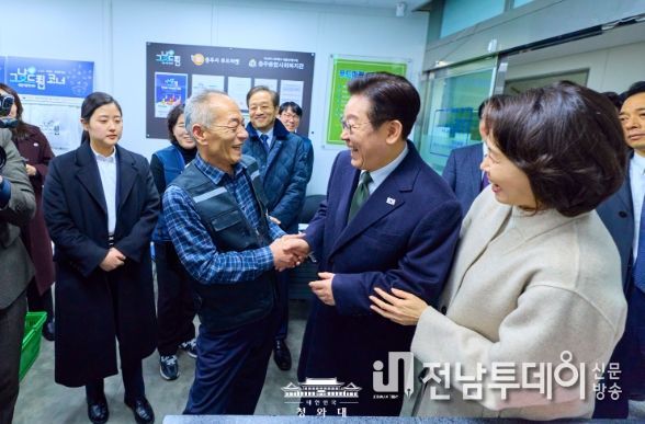 전남투데이 정홍균 기자 | 이재명 대통령과 김혜경 여사는 11일 오후 충주시건강복지타운 안에 위치한 푸드마켓 내 그냥드림 코너를 방문해 운영 현황을 점검하고 종사자들을 격려했다고 안귀령 청와대 부대변인이 서면 브리핑을 통해 전했다.