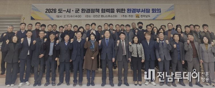 전남투데이 김용희 기자 | 전라남도는 ‘2026 도-시군 환경업무 부서장 및 유관기관 회의’를 지난 11일 강진 웰니스푸소센터에서 열고, 2030년 생활폐기물 직매립 금지에 대비한 처리체계 확충 등 환경 분야 주요 현안을 논의했다.
