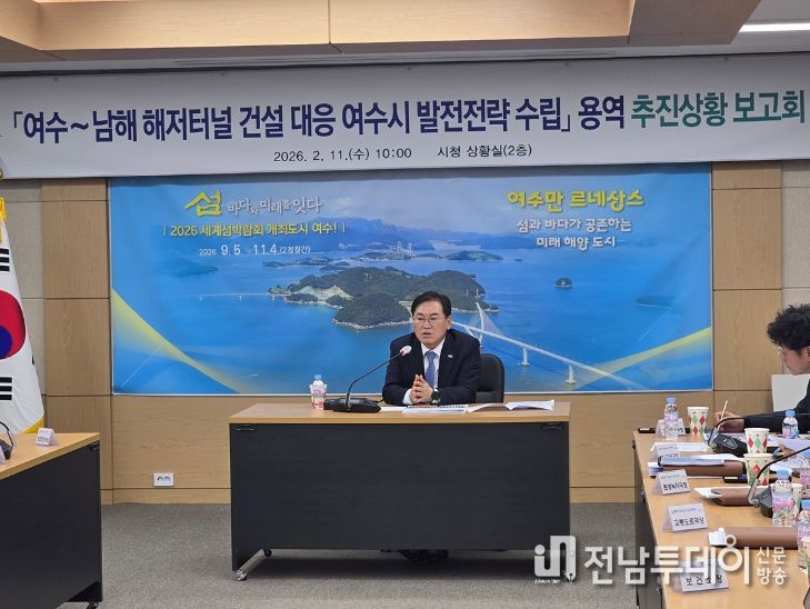 전남투데이 조평훈 기자 | 여수시는 여수~남해 해저터널 건설에 선제적으로 대응하기 위해 여수시 발전전략 수립 용역의 추진 상황을 점검하고 관계부서 의견을 수렴하기 위한 보고회를 개최했다.