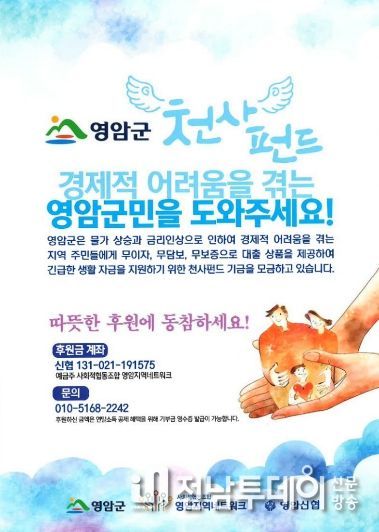 천사펀드는 지역사회의 십시일반을 기금으로 적립, 긴급 지원이 필요한 영암군민에게 생활 안정 자금을 무이자·무보증·무담보로 대출해 주는 영암형 사회적 금융이다.