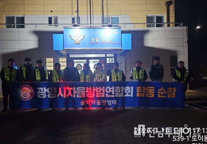 전남투데이 조평훈 기자 | 광양시 골약동사무소는 지난 10일 설 명절을 앞두고 지역 내 범죄 예방과 주민 안전 강화를 위해 골약자율방범대(대장 김동근) 주관으로 야간 합동 방범활동을 실시했다고 밝혔다.